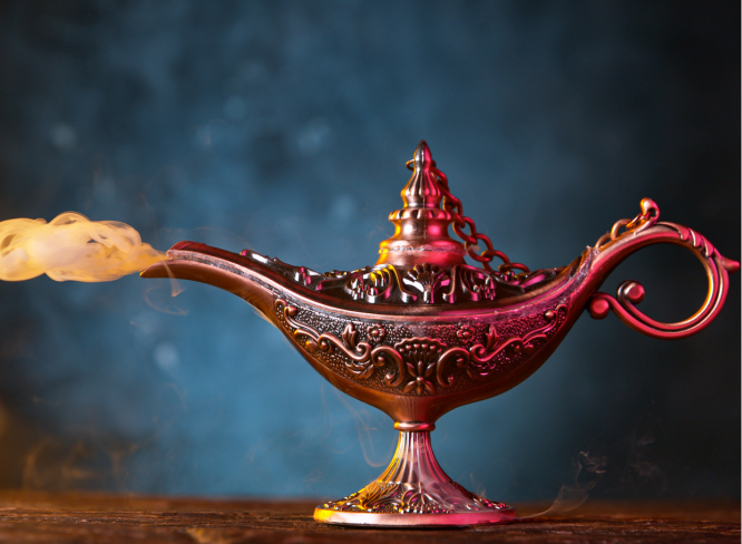 Mit dem Geist der Lampe erfüllt er sich seine Träume, bleibt dabei aber klug und bescheiden. So findet er nicht nur Reichtum, sondern auch das Glück mit Prinzessin Adonide.