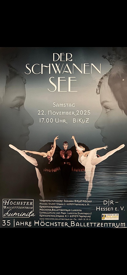 Am 22. November 2025 präsentiert die Tanzschule Luminita ihr halbpofessionelles Ballett „Schwanensee“ im BIKUZ Frankfurt am Main. Das weltberühmte Stück von Tschaikowski begeistert Groß und Klein gleichermaßen – perfekt geeignet für Familien, Ballettliebhaber und alle, die sich von anmutigen Bewegungen und klassischer Musik verzaubern lassen möchten.