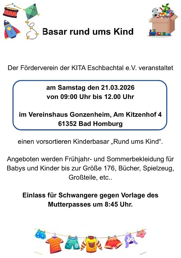 Angebot werden Frühjahr-und Sommerbekleidung für Babys und Kinder bis Größe 176, Spielzeug, Bücher und Großteil und vieles mehr