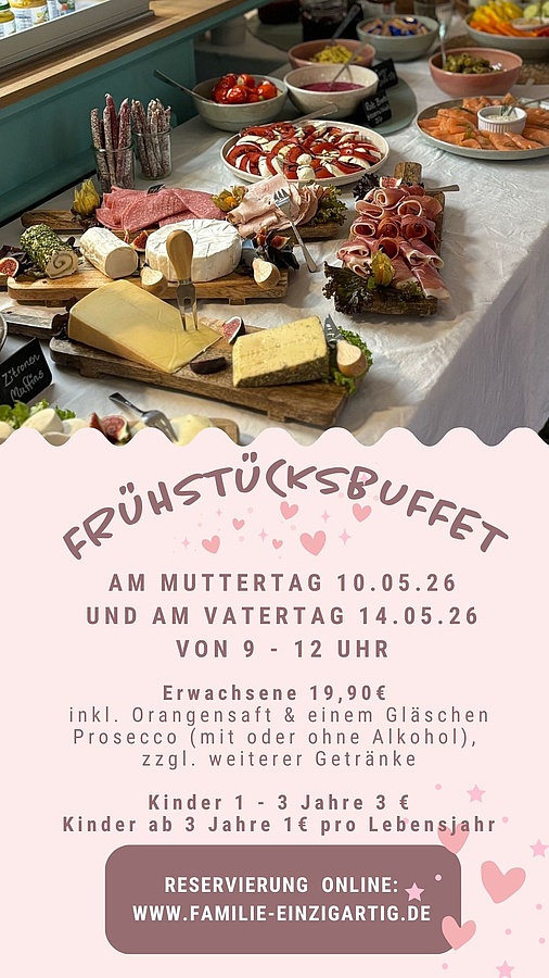 Genießt im tollen Familiencafé eine entspannte Zeit mit der Familie und gönnt den Mamas einen sorglosen Start in den Muttertag.