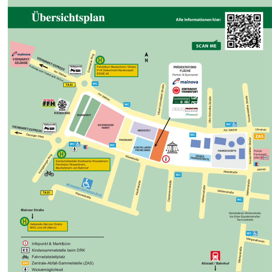 Die feierliche Eröffnung ist am Freitag um 12 Uhr am Kettenkarussell mit Bürgermeister Dirk Westedt, den Rheingauer Weinmajestäten und fünf Böllerschüssen. Imbiss- und Getränkestände öffnen Freitag und Samstag von 10 bis maximal 1 Uhr, an den übrigen Tagen von 10 bis maximal 23 Uhr. Fahrgeschäfte laufen Freitag und Samstag von 11 bis 24 Uhr, am Sonntag von 11 bis 23 Uhr sowie Montag und Dienstag von 12 bis 23 Uhr. Die Krammarktstände sind am Freitag ab 11 Uhr bis mindestens 21 Uhr geöffnet, von Samstag bis Dienstag jeweils von 10 bis mindestens 21 Uhr. Das Messezelt öffnet am Freitag von 12 bis 20 Uhr, am Wochenende von 10 bis 20 Uhr und Montag und Dienstag von 10 bis 18 Uhr. Vor der offiziellen Eröffnung am Freitag um 12 Uhr können einzelne Stände und Fahrgeschäfte noch geschlossen sein.
