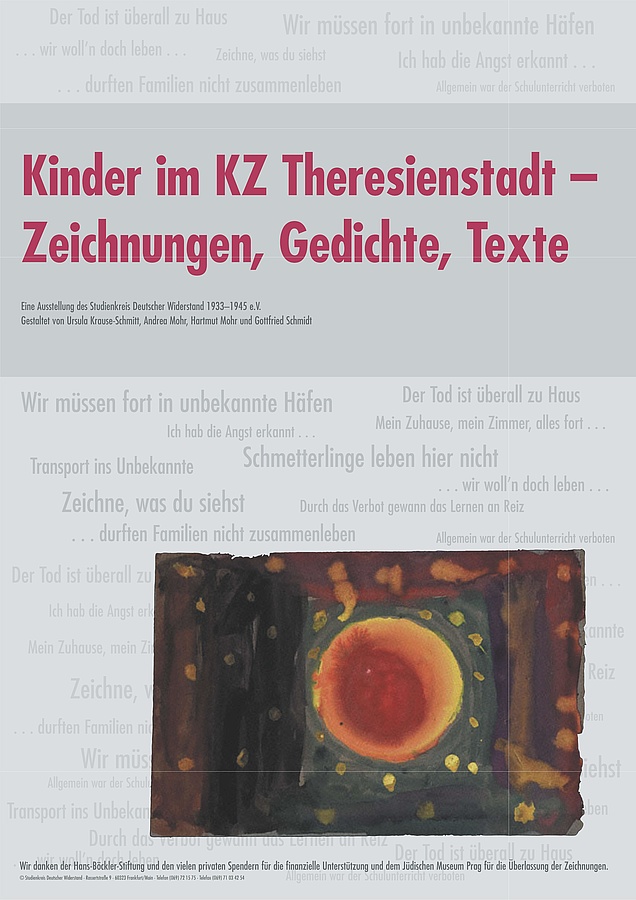 Die Ausstellung erinnert an das Schicksal von rund 15.000 jüdischen Kindern und Jugendlichen, die zwischen 1942 und 1945 in das Konzentrationslager Theresienstadt deportiert wurden. Viele von ihnen wurden später in Auschwitz ermordet. Im Mittelpunkt stehen Zeichnungen, Gedichte und Texte, die von den Kindern selbst im Lager angefertigt wurden – bewegende Zeugnisse ihres Lebens und Leidens. Auch die Geschichte von Edith Erbrich aus Frankfurt, die das Lager überlebte, ist Teil der Ausstellung. Ausstellungseröffnung: