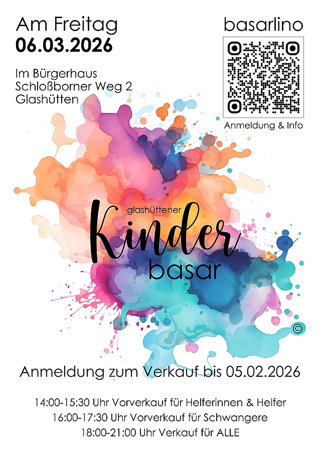Am Freitag, den 06. März 2026 findet der vorsortierte Kinderbasar für Kinderkleidung usw. statt. Schwangerenvorverkauf von 16:00- 17:30 Uhr, Verkauf für ALLE von 18:00 - 21:00 Uhr