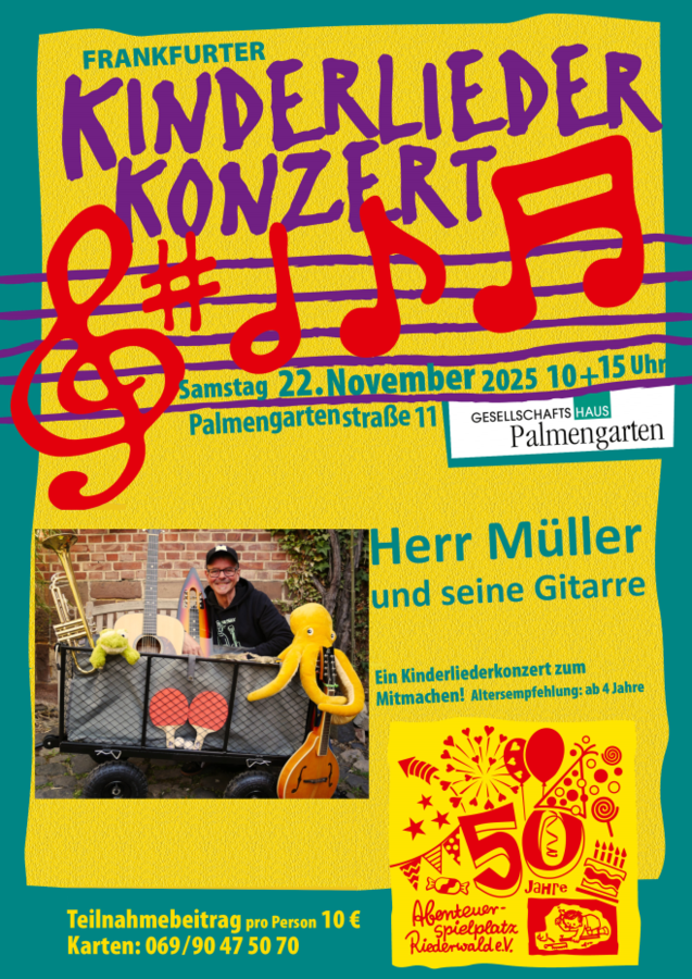 Am Samstag, den 22. November 2025, steht das Gesellschaftshaus Palmengarten, Palmengartenstraße 11, ganz im Zeichen von Musik und guter Laune. Es gibt zwei Vorstellungen, um 10 Uhr und um 15 Uhr.