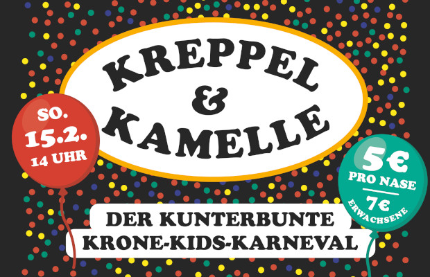 Endlich eine richtig fette Fastnachtsparty für Kinder (und ihre Eltern) – diesmal sogar auf zwei Floors! Die Kleinen feiern im Saal bei der Mitmach-Show von Kai & Flo mit Karaoke, Zauberei, Limbo, Kostümschau & Co. Die coolen 9- bis 13-Jährigen tanzen parallel im Erdgeschoss bei der „Crazy Disco“ im Schwarzlicht zu den Beats von DJs Schere & Storno (Unicorn Crew). Stärkung gibt’s an der Fressmeile mit Worschd & Weck, Mini-Kreppeln, Kamelle, Brezeln und Popcorn. Helau! Äla! Pommesgabel!
