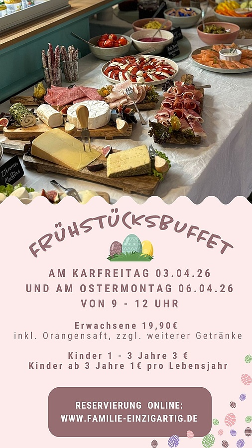 Oster-Frühstücksbuffet von 09:00 - 12:00 Uhr an Karfreitag und Ostermontag im Familiencafé.