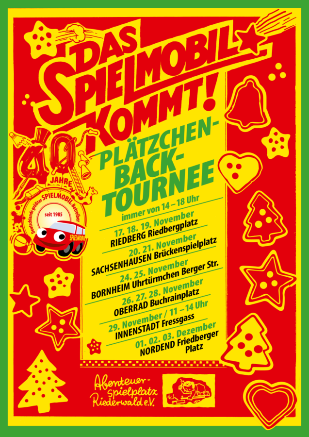 Der Abenteuerspielplatz Riederwald e. V. knüpft mit der Aktion an die Tradition an, in der dunklen Jahreszeit mit Kindern zu backen. Die Kinder kneten Teig, stechen Plätzchen aus und dekorieren sie. Die Betreuerinnen und Betreuer des Spielmobils unterstützen sie dabei.