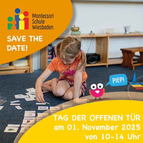 Am Samstag, den 01.11.2025 öffnen wir unsere Türen für interessierte Eltern und deren Kindern. Bei der Sinnesrallye können Sie sich einen ersten Eindruck unseres Schulhauses machen. Unsere Bewegungsbaustelle im Sportraum ist für unsere jüngsten Besucher aufgebaut. Besuchen Sie die Vorschulgruppe, unsere Montinis, und testen Sie Ihr Wissen bei unseren Mitmachstationen. Ein informativer Vortrag zum pädagogischen Konzept unserer Schule findet in unserer Mensa statt. Abgegrundet wird unser Tag der offenen Tür durch eine Darbietung des Experimentierkurs und der Musikgruppe. Wir freuen uns Sie in der Zeit von 10-14.00 Uhr Sie kennenzulernen.