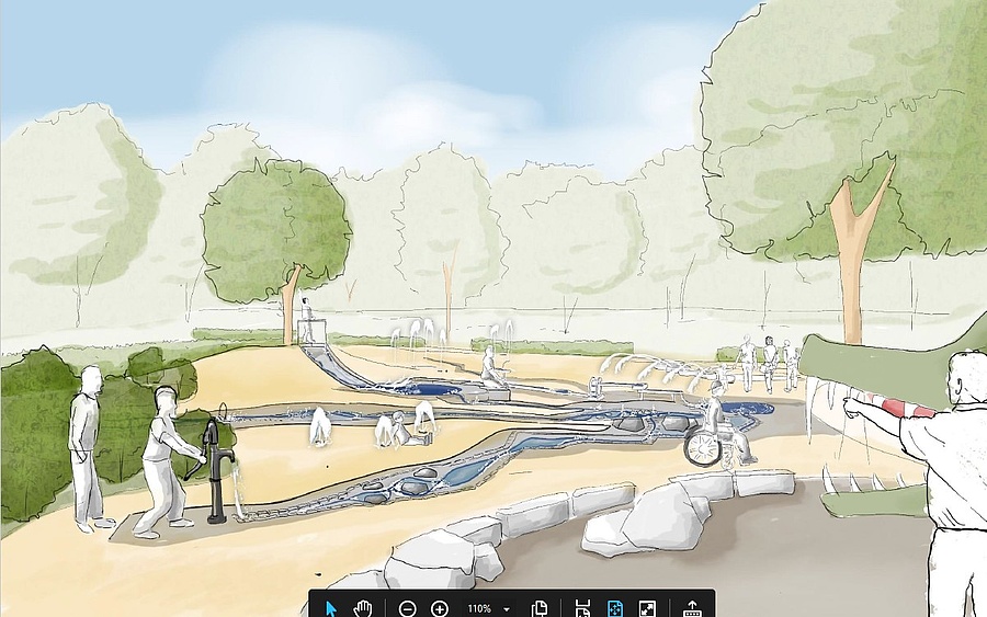 Diese Rückmeldungen haben die Planung maßgeblich beeinflusst. Deshalb wird der neue Spielplatz neben den Wasserelementen auch mit Bäumen, Grünflächen und schattigen Aufenthaltsbereichen ausgestattet.